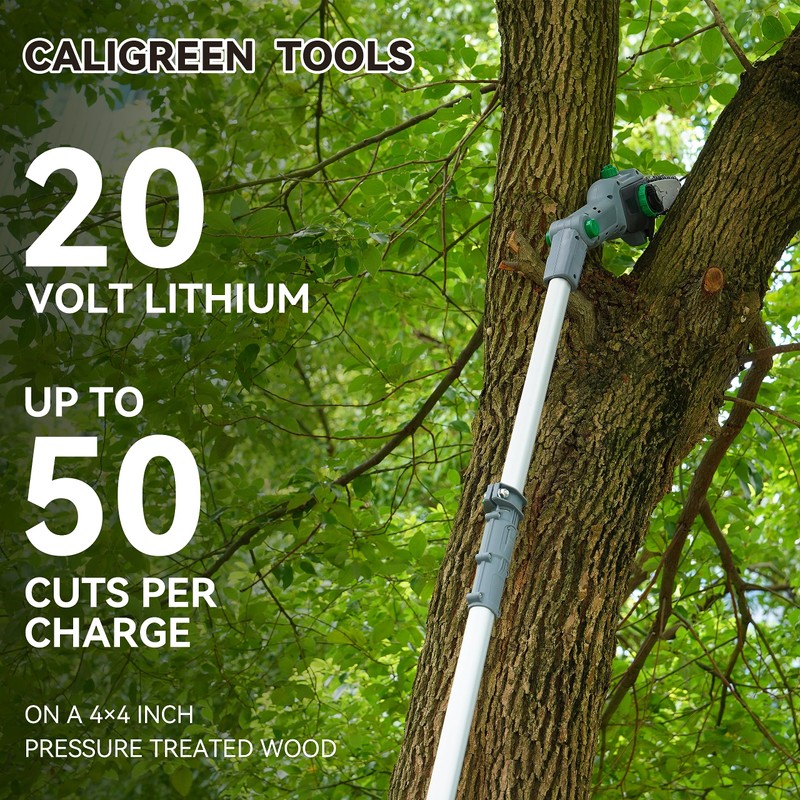 CaliGreen Tools 20V 8" Cordless Polesaw Pole Saw 10FT Reach Great For Pruning and Trimming Branches 2.5Ah Battery and Charger Included