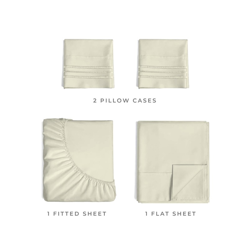 Calimartz Twin Size Sheets – 4 Piece Bedding Sheets & Pillowcases – Hotel Luxury, Soft Microfiber 100GSM, Breathable & Cooling Bed Sheets – with Deep Pocket up to 16’’ – 1800 Thread Count. (Ivory)