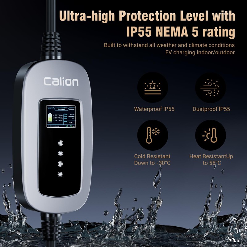 - Safe and Reliable: This Electric Vehicle Portable Charger features an IP55 water-resistance rating, protecting against dust and water splashes. It also provides comprehensive protection against leakage, overcurrent, overvoltage, undervoltage, over-temperature, low-temperature, short circuits, surges, and overloads, ensuring safe and reliable charging