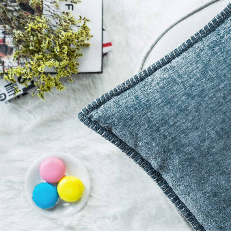CaliTime Throw Pillow Cases Pack of 2 Cotton Thread Stitching Edges Solid Dyed Soft Chenille Cushion Covers for Couch Sofa Home Farmhouse Decoration 12 X 20 Inches Smoke Blue