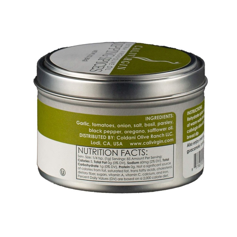 - A TRUE GOURMET BREAD DIPPING: Calivirgin Olive Oil Dipping Spices combine 5 diverse, gourmet flavors in a unique, irresistible & incredibly delicious spice mix; Basil, sun-dried tomatoes, garlic, parsley & oregano