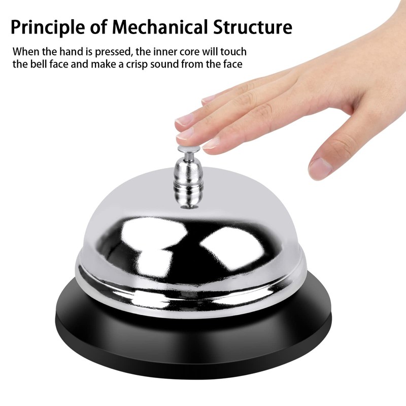 - 🛎【High Quality】 The desk bell is made of stainless steel and chrome-plated, which is durable and easy to clean. The bell base is non-slip, so it won't move and damage your desk. In addition, the bell is designed so that it does not get stuck when pressed, so the button is automatically reset after use