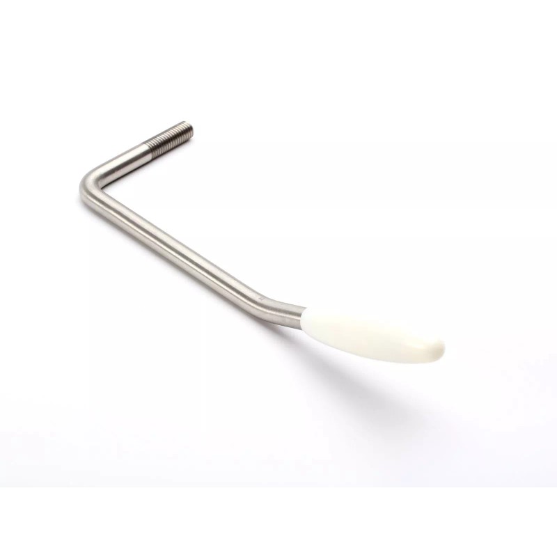 Callaham's arms are made of stainless steel, so there's no plating to worry about, and the arm will never corrode. Also, if you bend the arm to suit your playing style, you don't have to worry about plating flake off like you do with a plated arm. This arm is fully threaded, so it will work in almost any block that uses a 10-32 UNF thread (this includes all vintage & American Standard Fender blocks). It can be used in Callaham's enhanced vintage blocks, though the Callaham virtual pop-in arms are a better choice for these blocks.