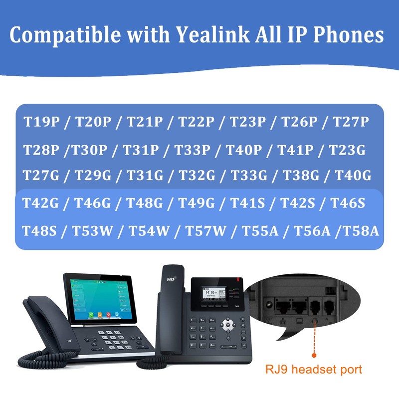 - FIT FOR YEALINK ALL IP PHONES: RJ9 office phone headset for Yealink T19P T20P T21P T22P T23P T26P T27P T28P T30P T31P T33P T40P T41P T23G T27G T29G T31G T32G T33G T38G T40G T42G T46G T48G T49G T41S T42S T46S T48S T53W T54W T57W T55A T56A T58A VP59 etc.
