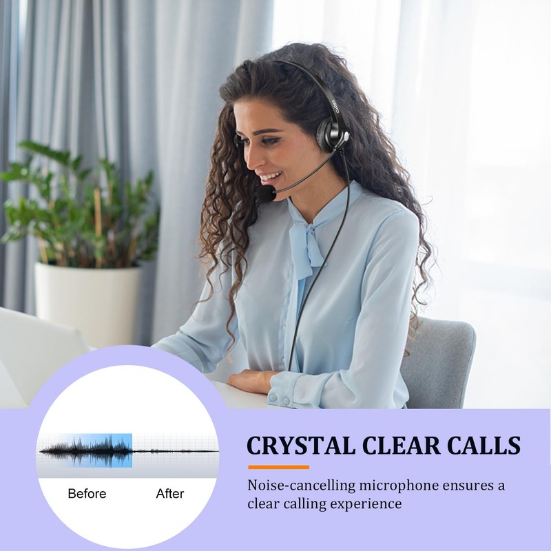 - Crystal Clear Calls: RJ9 landline phone headset with a noise-canceling microphone to reduce background noise and delivers excellent sound quality. Flexible microphone boom captures sound well, plus acoustic shock protection circuit protects your hearing.
