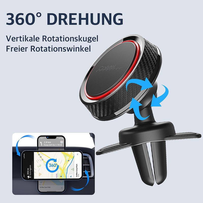 - Car magnetic mobile phone holder, strong N50 magnet for a secure hold, 360° rotatable, with holder clip for car ventilation, practical design: can be operated with one hand, suitable for all smartphones