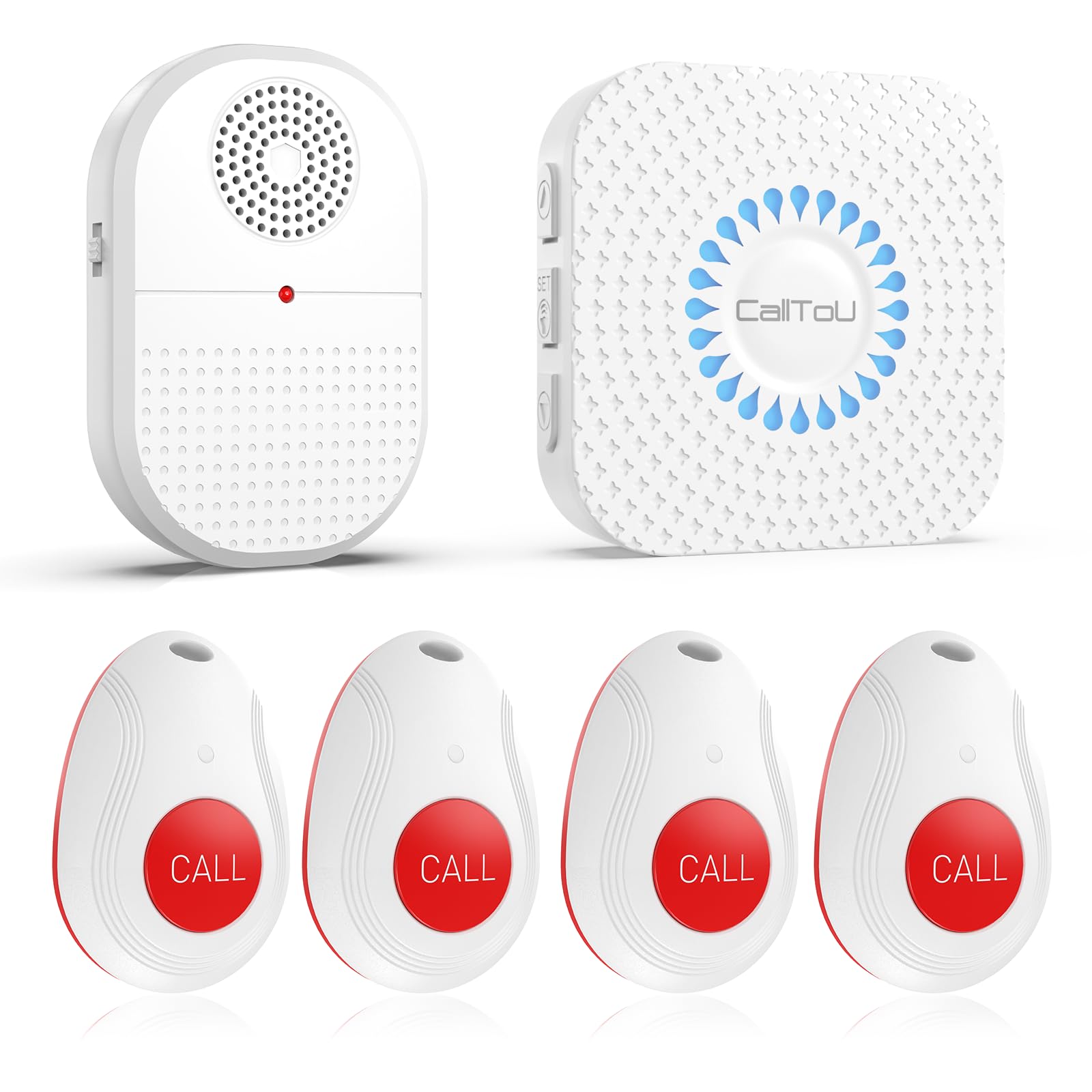 CallToU Wireless Caregiver Pager Call Button for Hard of Hearing 500FT Emergency Alert System Waterproof Call Bell for Elderly at Home/Elderly/Patients/Disabled (CCVB 4-2)