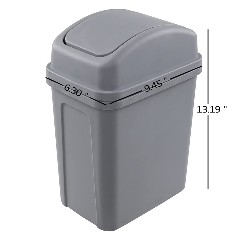 Callyne Plastic Swing Top Lid Trash Can, Small Waste Bin with Lid, Gray, F