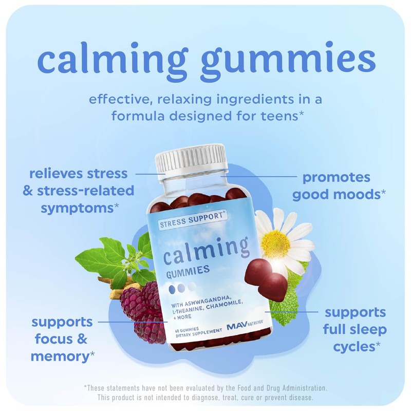 - 5-in-1 BENEFITS: Unlike calming gummies for kids, our stress relief gummies help your teen manage the highs and lows of adolescence. Our 5-in-1 formula supports relaxation, good moods, and full sleep-cycles.*