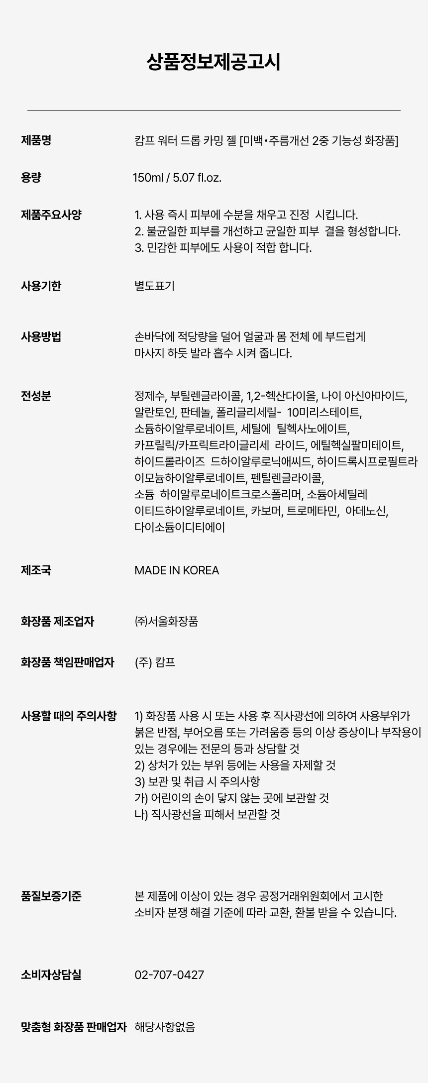 [calmf] Camp Water Drop Calming Gel 150ml / [calmf] 캄프 워터드롭 카밍젤 150ml