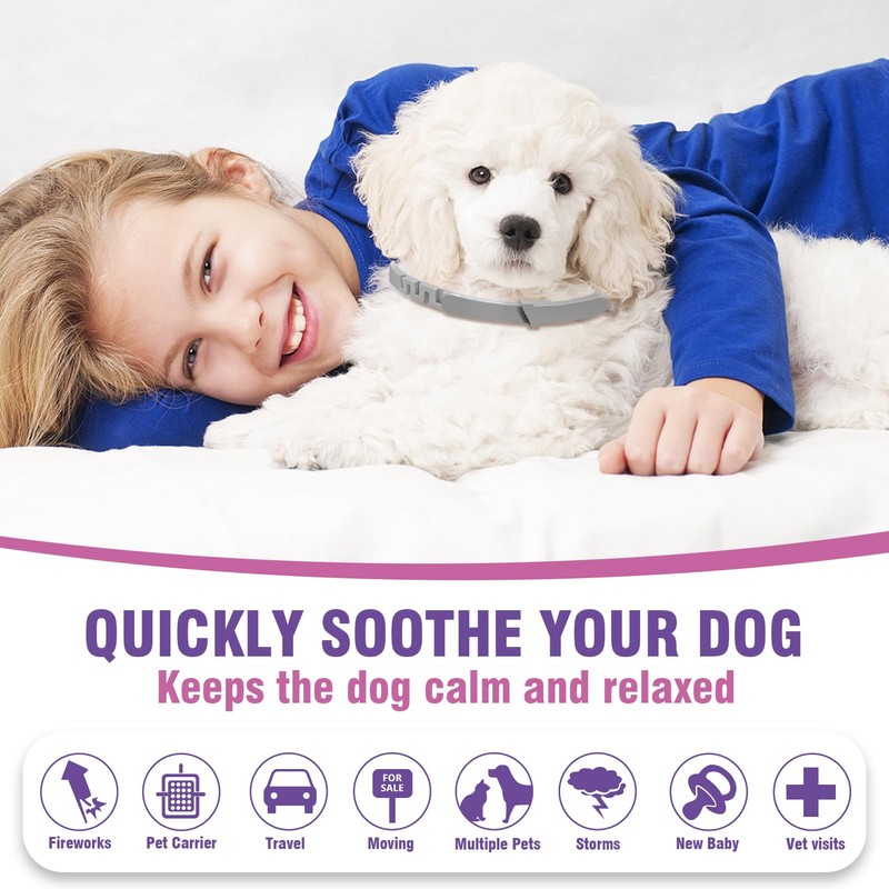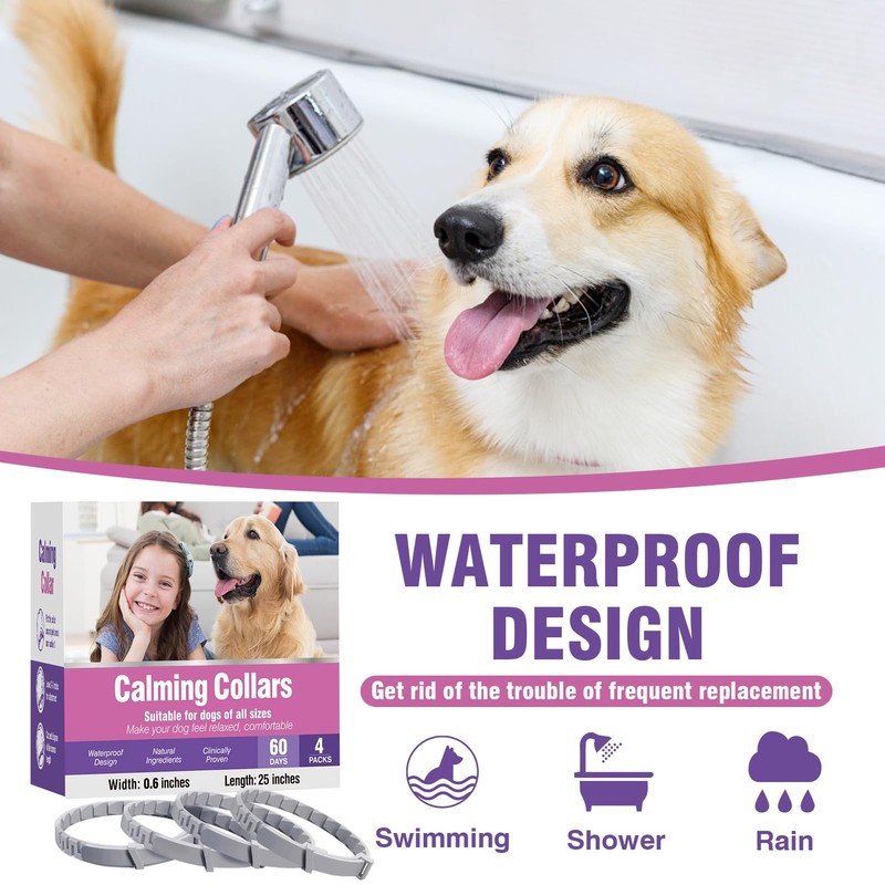 - 【Calming Collar for Dogs - Calming Lasts 60 Days】Calming collar for dogs continuously releases pheromones for up to 60 days, dog calming collar quickly releases dog calming pheromones, dog pheromone collar provides high quality and longer lasting pheromone delivery. The dog calming collar is waterproof, so there is no need to remove the calming collar when taking a bath or playing in the rain. The dog calming collar for anxiety can be worn continuously, replace every 4 weeks for best results.
