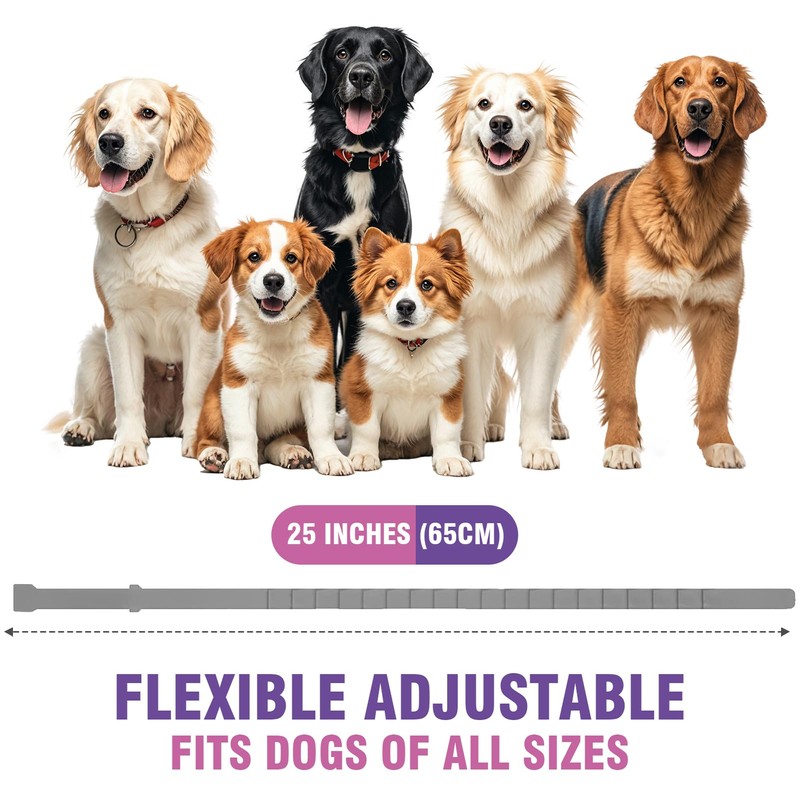 - 【Calming Collar for Dogs - Suitable for All Sizes of Dogs】The dog calming pheromone collar is very flexible, comfortable to wear and easy to adjust, the length of the dog calming collar is adjustable to 25 inches/65 cm. You can adjust the calming collar to a suitable length and cut off the excess part, the flexible design will not make your dog feel uncomfortable. The dog anxiety relief collar is suitable for all small, medium and large dogs.