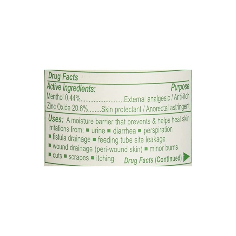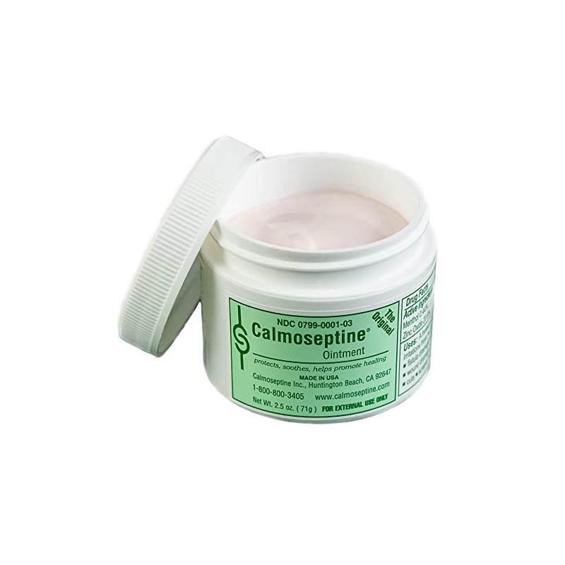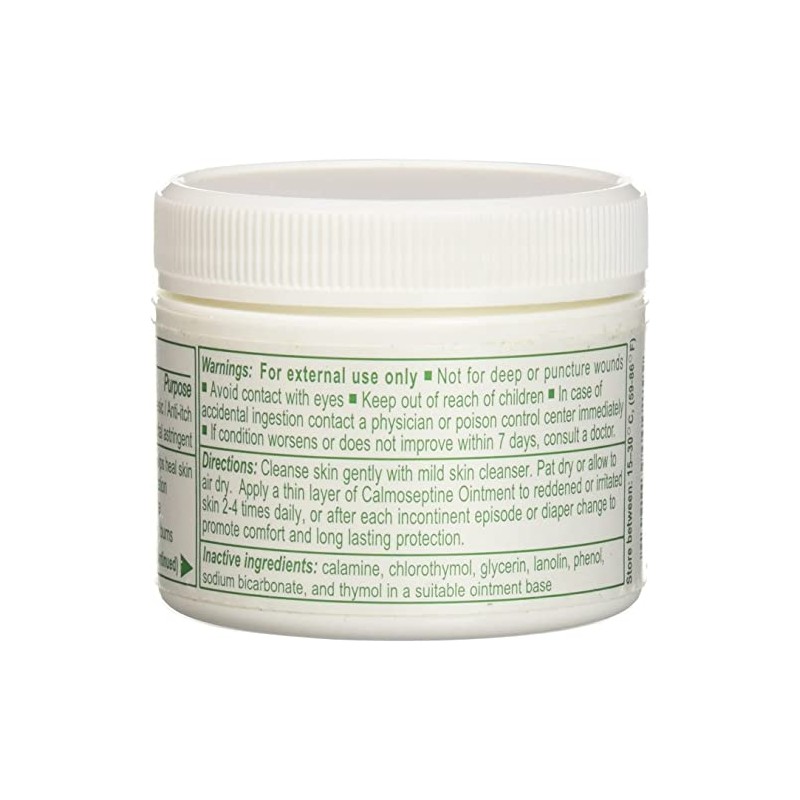 Calmoseptine ointment is a moisture barrier ointment that contains calamine, zinc oxide, menthol, and lanolin. Originally designed to treat diaper rash, Calmoseptine ointment has successfully been used to treat incontinence sites. Feeding tube site leakage, wound drainage, minor cuts and scrapes, minor burns, fecal or vaginal fistulas. Calmoseptine ointment acts as a barrier to protect the skin and draw away moisture. By creating this barrier the Calmoseptine ointment relieves discomfort and itching.