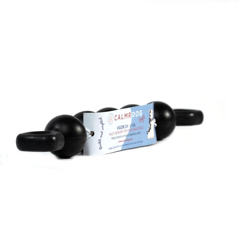 - Fight boredom and stress in your dog with play that allows them to feel their best. The combination of weight and flexibity stimulates the muscle and movement sense, nourishing the nervous system for improved well-being. Engaging, Interactive Play. Designed for Active, Sensory Play – The Calmr Dog Vigor is a rubber weighted and flexible toy that provides dynamic resistance when played with keeping dogs engaged and satisfied.
