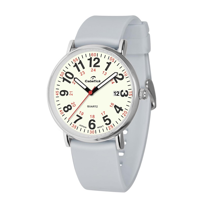CalmTick お受験時計 ナースウォッチ 秒針 アナログ シンプル かわいい おしゃれ 人気 3気圧防水 夜光 見やすい 男性用 女性用 受験生 高校生 中学生 男の子 女の子 男女兼用 (シルバー, グレー)