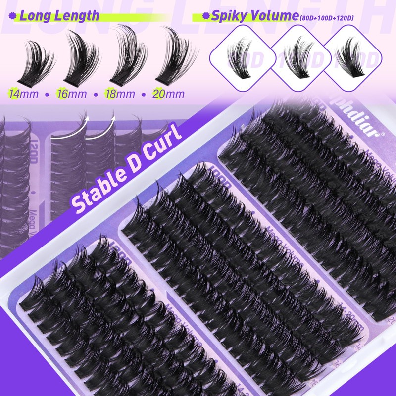 - Voluminous Eyelashes Individual Kit for Bold Glamour: calphdiar DIY lash extension kit feature three stunning volume lashes individual cluster- 80D 100D 120D - offering versatile styling options to suit any look. These eyelash clusters, with enhanced thickness, are designed to provide a voluminous and fluffy appearance