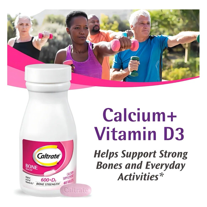 Caltrate Salud Ósea Calcio 600 + D3 120 Tabletas, Americano Sabor Sin sabor