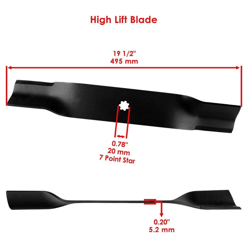 Caltric 19 1/2 inch 7 Point Star 38" Deck High Lift Blade For John Deere