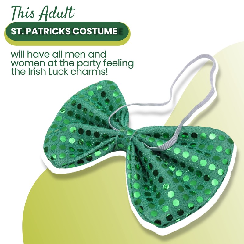 - MIX AND MATCH LEPRECHAUN COSTUME FOR DIFFERENT OCCASIONS - Tired of wearing the same costume year after year? This leprechaun costume set will allow you to try different combinations for a totally new outfit every time. There’s an option for either a bow tie or a necktie. You can mix and match these costume elements with a shamrock suit, vest, dress, or a full-on leprechaun outfit!