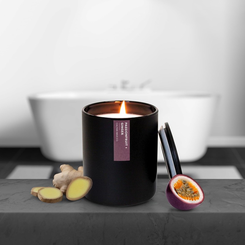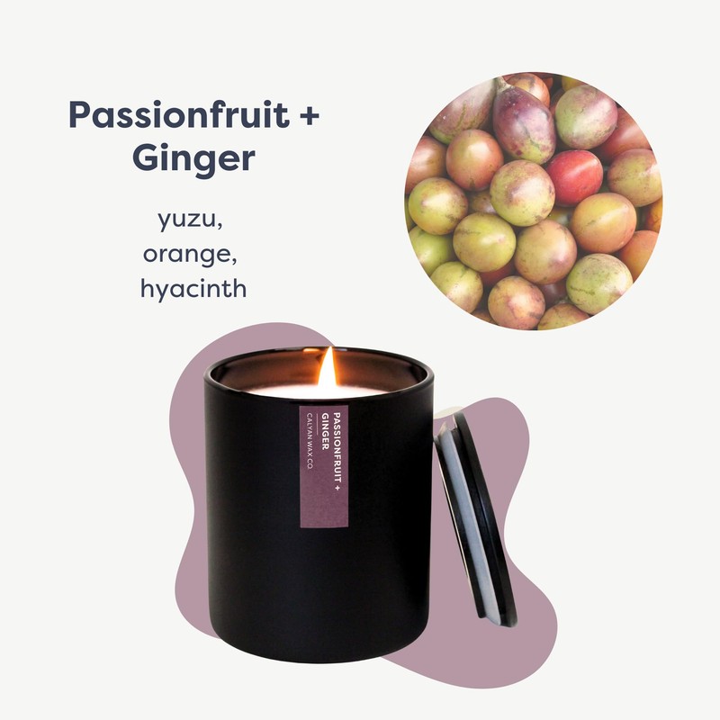 - PASSIONFRUIT & GINGER SCENTED CANDLE adds ambiance without overpowering. A warm & citrusy fragrance, sage, lavandin, and orange essential oils combine to fill your home with a luxurious aroma.
