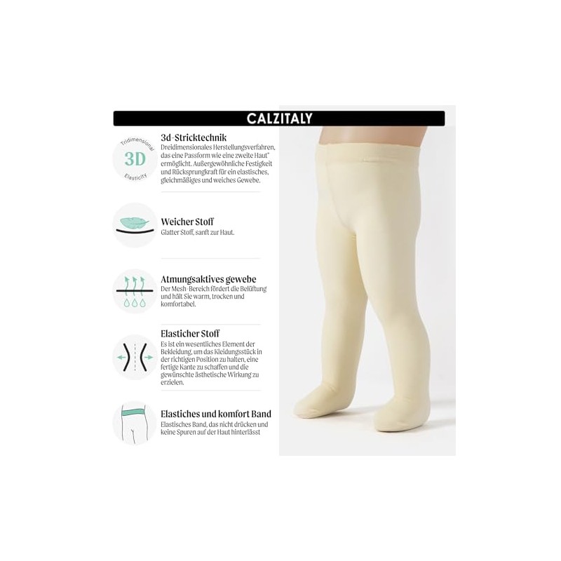 - Calzitaly Designed for the needs of toddlers, those who need comfortable clothes to move freely and feel protected. These 40 denier tights are made of high-quality microfibre and Italian yarns, they fit babies and toddlers because they cover your legs delicately, they are soft and elastic thanks to the 3D knitting technique.
