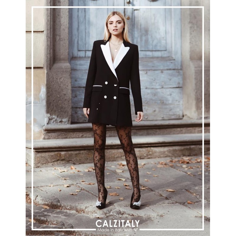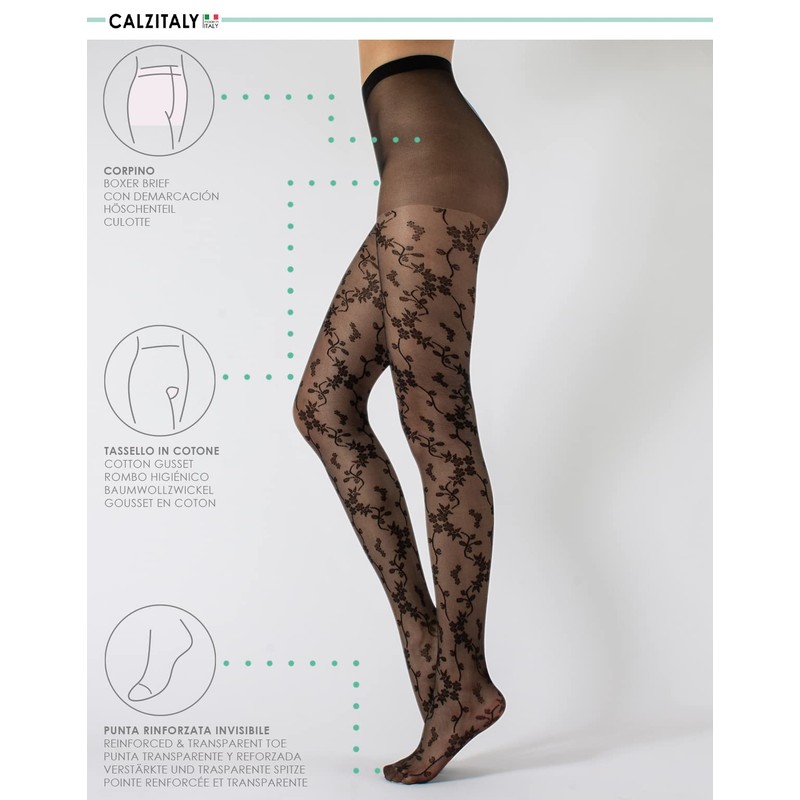 CALZITALY Fine Tights with Floral Pattern | Fashion Patterned Tights | Black | S/M, L/XL | 20 Denier | Made in Italy, black