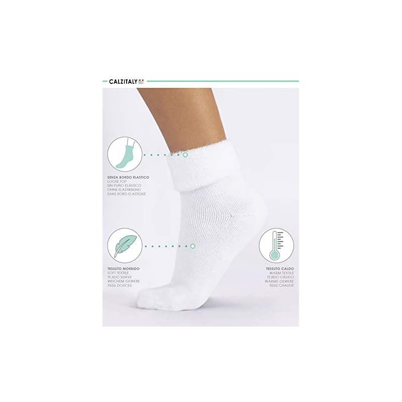 CALZITALY Warm stockings with angora look, winter socks with non-slip sole, multi-coloured, one size, made in Italy, White