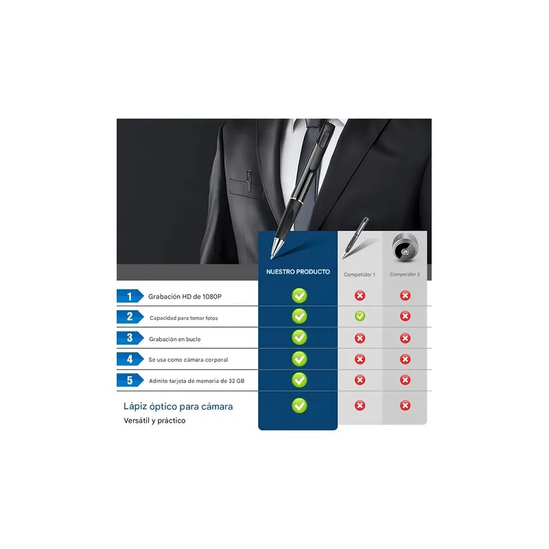 ¿Buscas una camara escondida que no llame la atención, funcione sin WiFi y sea útil para múltiples cosas? Esta lápiz cámara es mejor que otras opciones: combina HD 1080P, diseño discreto y utilidad como lápiz — todo en un solo producto. No esperes más para proteger tu hogar, registrar reuniones o capturar momentos importantes: ¡agrega al carrito ahora y disfruta de la comodidad y seguridad que necesitas!