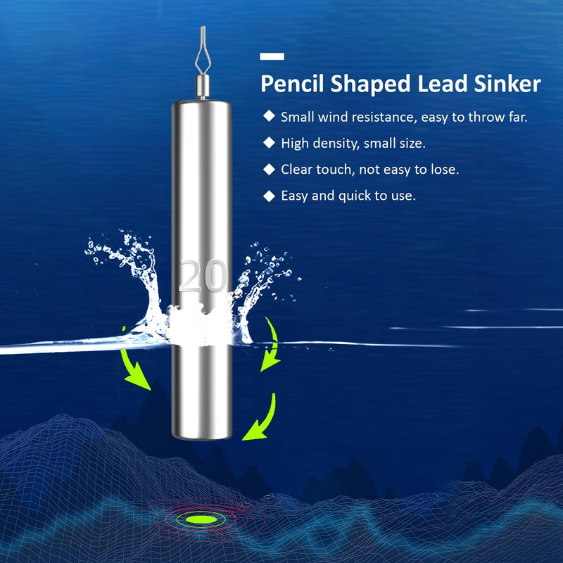Pencil Shape Streamlined design, fast entry into water, high sensitivity, and can easily avoid obstacles, helping to improve fishing efficiency and success rate.