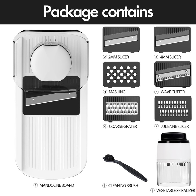 - Capacity:Also comes with a finger guard to protect your fingers and a knife holder boxes for storage. 2L containers can hold more vegetables;At the same time, all the accessories can be stored in it