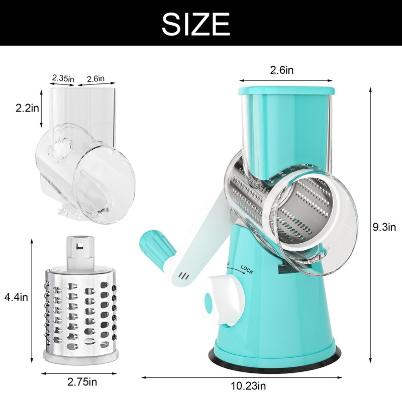 Cambom Rotary Cheese Grater Hand Crank Cheese Shredder for Fresh Cheese, Vegetable, Nuts,Non-slip Suction Base, Five Blades, Blue