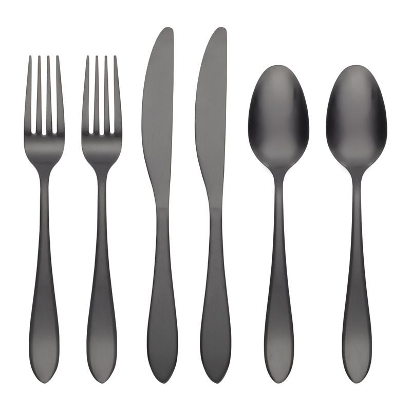 Cambridge 5017V2HCWA47 Delia Black Satin 6-Piece Flatware Set, Service for 2