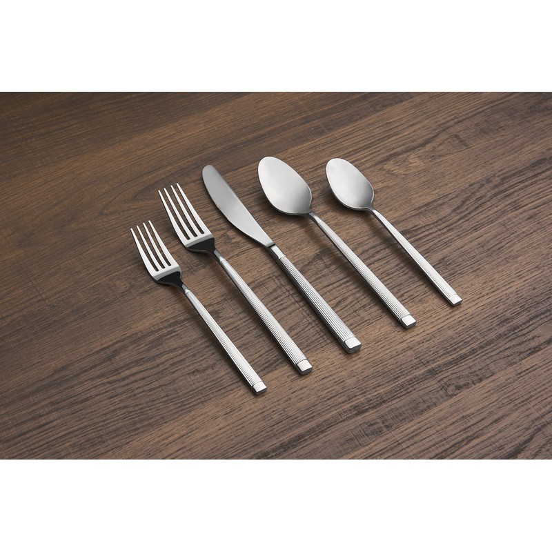 • Includes 4 each: salad forks, dinner forks, dinner knives, dinner spoons, and teaspoons.