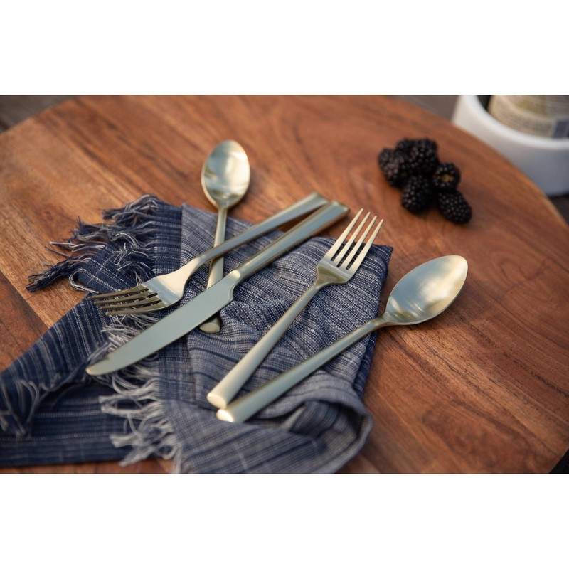 - Includes 4 each: salad forks, dinner forks, dinner knives, dinner spoons, and teaspoons.