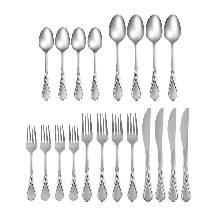 - SILVERWARE SET INCLUDES: 20-piece flatware: 4 salad forks, 4 dinner forks, 4 dinner knives, 4 dinner spoons and 4 teaspoons