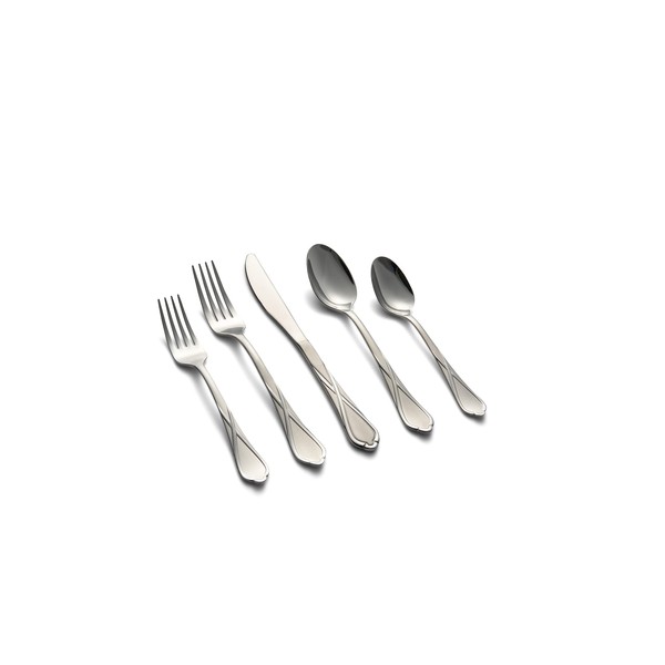 The elegant styling and two-tone finish of the Heather Sand 20-piece flatware set from Cambridge Silversmiths is sure to please for every occasion. Graceful and classic with lines of bright, mirror detail across the handle, this service for 4 is a timeless addition to any tabletop and any existing dinnerware sets to pair with. Durable stainless steel construction is dishwasher safe and never needs polishing making clean-up easy every time.