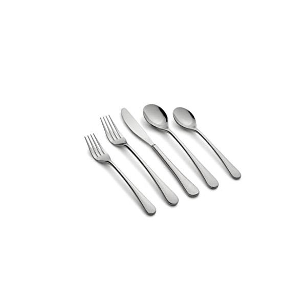- Includes 4 each: salad forks, dinner forks, dinner knives, dinner spoons, and teaspoons.