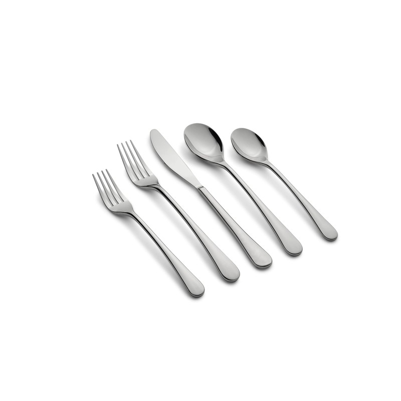 - Includes 4 each: salad forks, dinner forks, dinner knives, dinner spoons, and teaspoons.