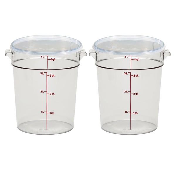 Cambro 4 QT (Quart) Round Food Storage Container with Lid (2 Pack) - (Clear) ASIN: B0CZ5GX2C7