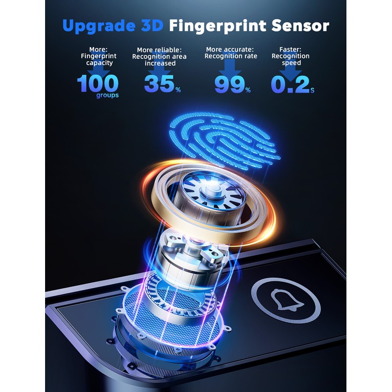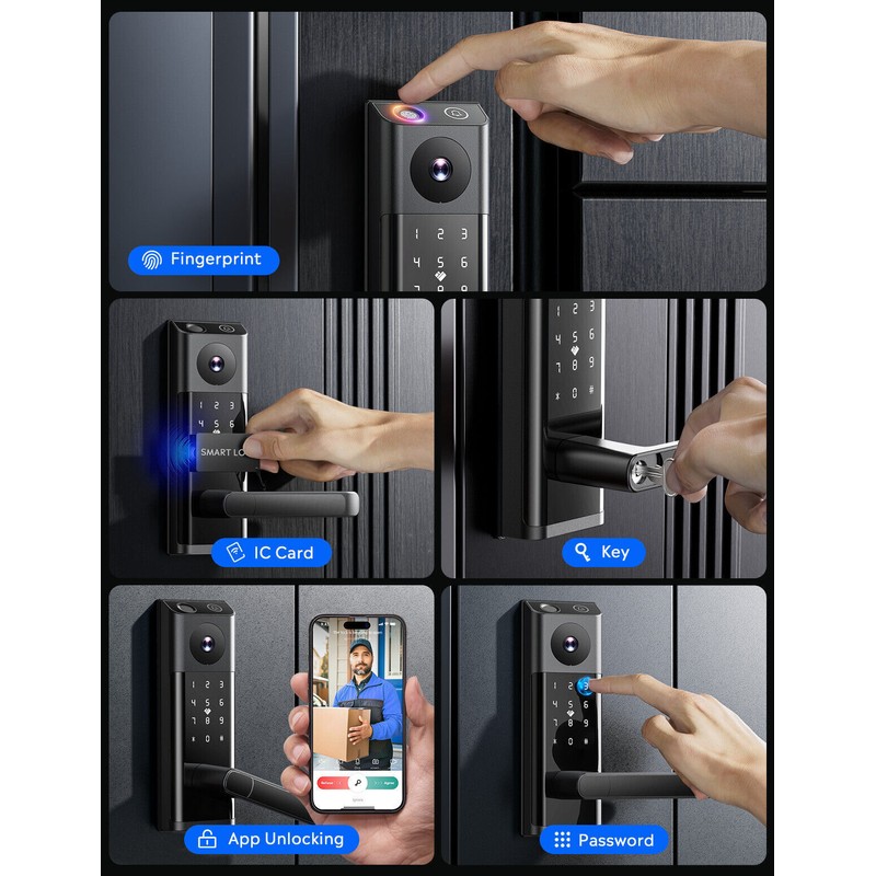 CAMCAMP Video Smart Lock with Camera & Doorbell & Handle Fingerprint Keyless Entry Lock