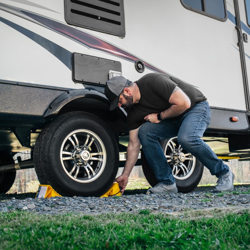 - Durable UV-Resistant Construction: Crafted from high-quality plastic with built-in UV inhibitors, these camper wheel chocks are engineered to withstand the rigors of outdoor use and provide long-lasting performance.