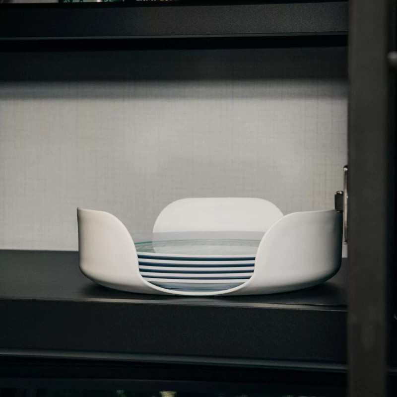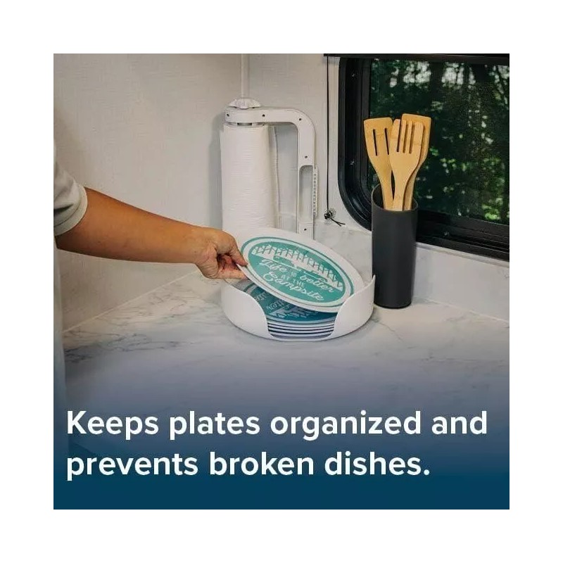 Camco Stack-A-Plate- Easily Organize, Store and Protect Plates During Travel, Non- Slip Backing, Simply Dispense Plates During Later Use, Great for RVs - White (43601)