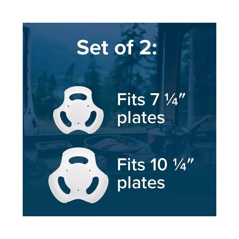 • Set of two one fits plates up to 7-1/4" and the other fits plates up to 10-1/4"
