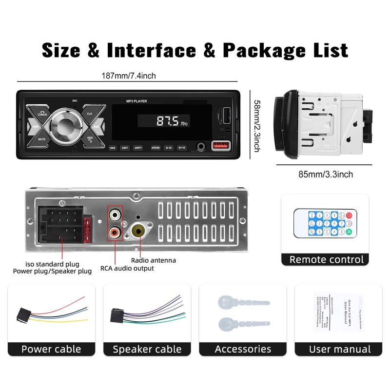 - 【Expandability Features】LCD display time, volume, radio channel, dimmable illumination for buttons can be set to match the decoration in your car. Built-in EQ for frequency division adjustment the digital sound and comes with a remote control for convenient operation.