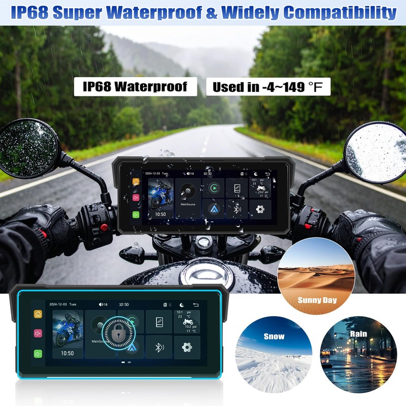 - Dual Bluetooth design and EQ sound: With Bluetooth, you can quickly pair the carplay, and at the same time you can connect the headset or helmet. EQ sound is clear and the signal transmission is stable. You don't have to stop and answer the phone, but can focus on driving and safety.