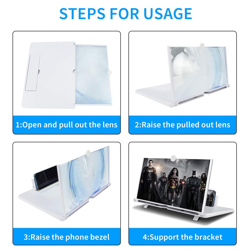 - [COMPATIBILITY]This Phone Screen Amplifier works with all makes and models of smartphones (iphone, Samsung, Google, Huawei, etc.).Just put the phone into the screen amplifier, you can easily enjoy the home theater-like effect.