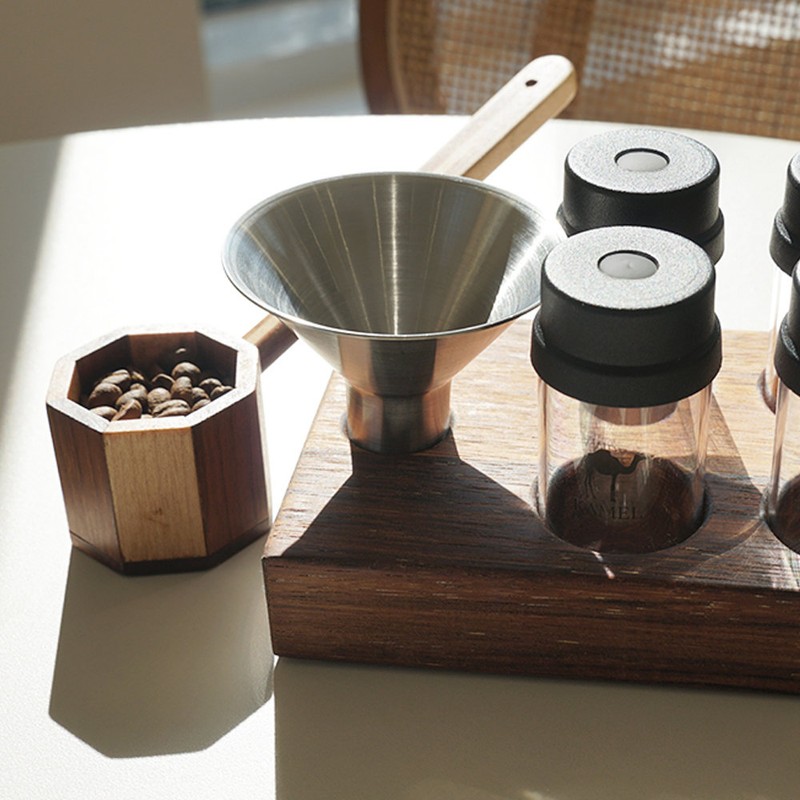 - Product name and model name: Camel Bean Cellar Coffee Bean Storage Container (25g x 5 pieces) / Mini Hopper / Wood Tray