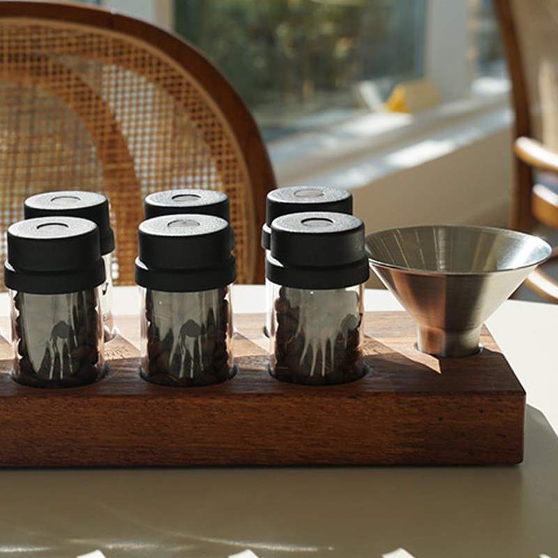 Camel Beanseller coffee bean storage container (25g x 5 pieces), small portion container collection, 4 wood trays, 10 pieces / 카멜 빈셀러 커피 원두 보관통(25g x 5개입) 소분용기 모음, 4.우드트레이 10구