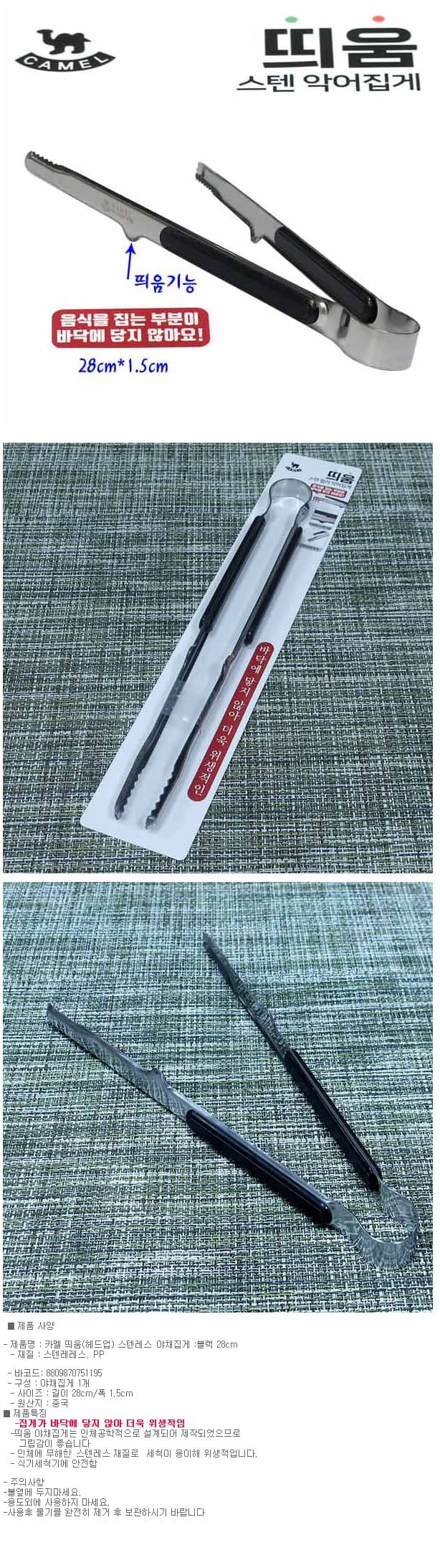 Camel Black Multi-Purpose Kitchen Tongs 28cm 2ea