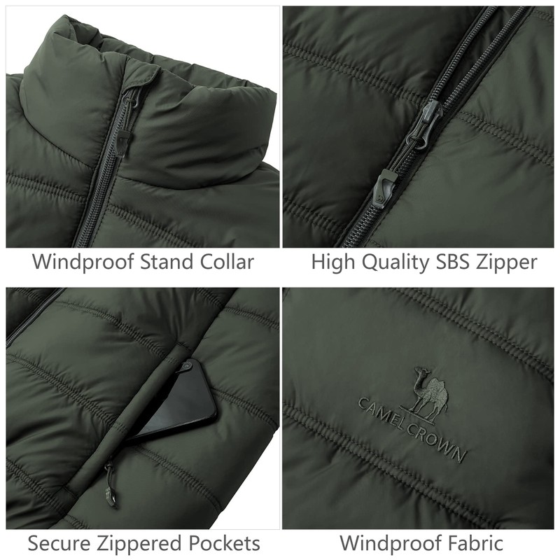 CAMEL CROWN Puffer Vest Men Quilted Winter Padded Sleeveless Jackets Gilet for Casual Work Travel Outdoor